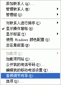 同樣,首先你應(yīng)該在MSN Messenger中調(diào)節(jié)你的音頻和視頻設(shè)備。選擇工具->音頻調(diào)節(jié)向?qū)?圖8)就會(huì)彈出“音頻和視頻調(diào)諧向?qū)А钡拇翱?圖9),請(qǐng)根據(jù)這個(gè)向?qū)У奶崾,一步一步進(jìn)行測試和調(diào)節(jié)。
