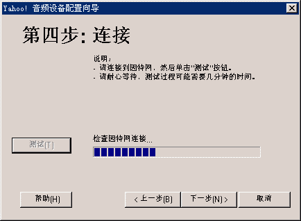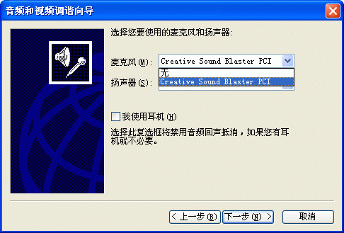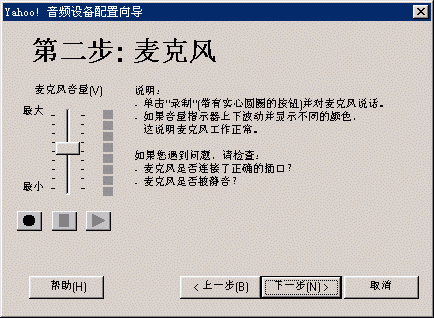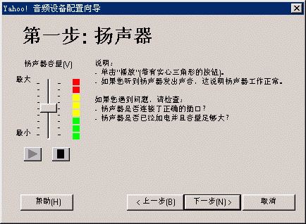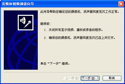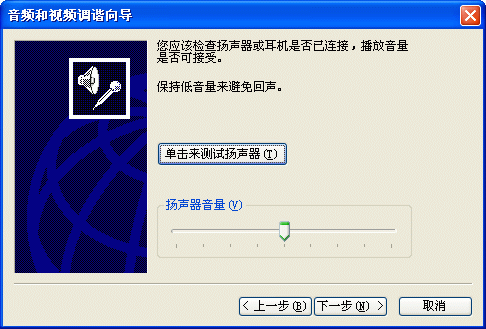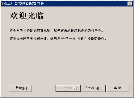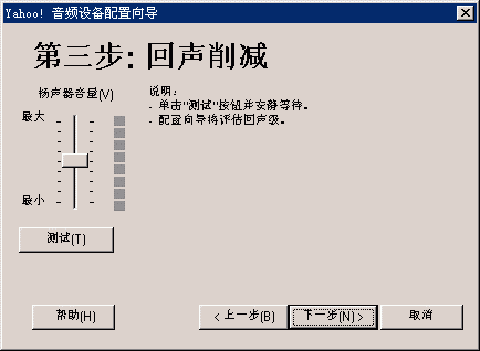 選擇幫助->音頻設(shè)備配置向?qū)?圖2),會(huì)彈出“音頻設(shè)備配置向?qū)А贝翱?圖3),這個(gè)向?qū)?huì)幫助你對(duì)揚(yáng)聲器、麥克風(fēng)、回音、網(wǎng)絡(luò)連接等項(xiàng)目進(jìn)行標(biāo)準(zhǔn)的測試和設(shè)置。