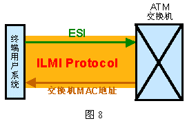 在呼叫建立過程中終端系統(tǒng)和ATM交換機(jī)之間(UNI)通過過渡性本地管理接口(ILMI:Interim Local Management Interface)協(xié)議完成地址注冊(cè)。注冊(cè)過程如下圖所示。