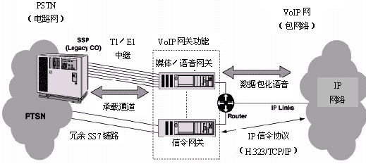 由于通過IP網傳送話音市場的迅速增長,我們有必要對許多設備供應商都在推出的VoIP網關作一個介紹。VoIP網關用于連接電話網(就是基于電路的PSTN)和基于數據包的IP網,使得呼叫能通過IP網絡無縫地連接到PSTN電話。最初,網關只支持比較少的呼叫,一般只支持單個的T1或E1,最多只能支持幾百個話音電路。這種早期的網關一般使用ISDN協(xié)議或隨路信令協(xié)議連接到PSTN。然而隨著基于IP話音應用的迅速成長,并被各運營商所采用,網關容量逐漸得到了擴大,能夠支持多達數千個呼叫。網關規(guī)模的擴大和運營級網關的要求,使得SS7成為連接IP網關和PSTN必須采用的信令協(xié)議。