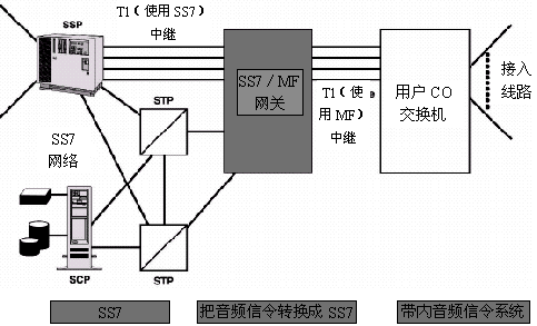 如圖14所示,SS7/MF網關可以實現SS7信令到MF(多頻)信令的轉換,使現有MF信令交換機無須升級就能擁有SS7信令能力;旌狭薙S7和基于音頻信令的呼叫建立環(huán)境能為各種運營商經濟實用的SS7網絡接入方案,采用這一方案的有蜂窩電話運營商、本地電話運營商、長途電話運營商和其它一些仍使用舊式交換機的電話運營商。