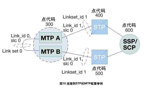 MTP A和MTP B之間的鏈路集的設置方法與任何其它SS7鏈路和鏈路集相同。如果有額外的數(shù)據(jù)設置表明此鏈路與其它連接相鄰節(jié)點的鏈路不同,則應區(qū)別對待。
