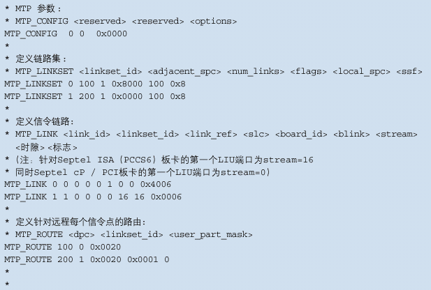 每一目標路由(包括相鄰節(jié)點)都應該指明兩個鏈路集。主要的是連接本地MTP到相鄰節(jié)點的鏈路集的標識符。參數(shù)應該用來表示連接共享一個本地點代碼的兩個MTP3層的鏈路集。參數(shù)應該設為0x0001,表明第二個鏈路集已經(jīng)被指定,并且只有在通過主要鏈路集無法路由到目標節(jié)點的情況下,才可使用這個鏈路集來路由傳輸流量。所有其它參數(shù)的含義都與用戶手冊中描述的單MTP設置中的參數(shù)相同。