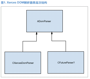 Xerces DOM解析器對象的類層次結(jié)構(gòu)非常類似于其它CSF電話網(wǎng)絡、數(shù)據(jù)通信或語音設備。抽象的DOM解析器設備包括實施任何類似解析器的有用狀態(tài)信息和基本數(shù)據(jù)及方法。具體的XercesDOMParser類出自于抽象類,并提供了針對特定Xerces解析器的具體方法和數(shù)據(jù)。其它類似的DOM解析器如果添加到CSF,也可以基于同樣的抽象類進行構(gòu)建。圖1詳細描述了該類層次結(jié)構(gòu)。