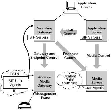 許多語音服務(wù)都是由媒體服務(wù)器提供的。例如,一個客戶給某個電子商務(wù)網(wǎng)站打電話會被接到一個自動語音應(yīng)答(IVR)上或者自動總機上。這些應(yīng)用使用了語音,語音識別和音頻等功能,都是運行在媒體服務(wù)器上的。在下一代網(wǎng)絡(luò)的實現(xiàn)中,媒體服務(wù)器就象是另一個電話(或者說,一個SIP的終端)。因此,他們可以享受和用戶一樣的SIP的優(yōu)點。