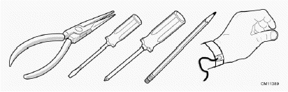 3. 將一小號(hào)平口螺絲刀的頂端或類似物件插入塑料護(hù)圈的薄片下,輕輕地向下壓螺絲刀將電池撬起來;