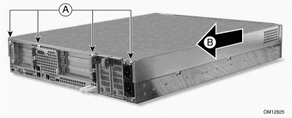 為了充分的散射和通風(fēng),在啟動(dòng)服務(wù)器之前務(wù)必重新裝上外蓋。不安裝外蓋運(yùn)行系統(tǒng)可能損壞系統(tǒng)部件。外蓋安裝操作如下: