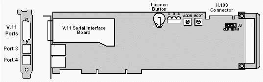 圖5-5. 帶二PCM端口和一V.11串行接口板的信令卡