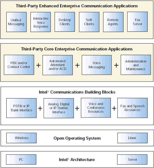 - 第1層:Dialogic® 體系結構的PC或服務器技術。