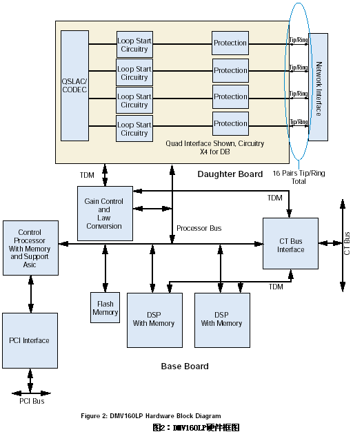 當板卡上的呼叫處理資源被利用的時候,網(wǎng)絡信號就被提取出來并且被送到板卡上的控制處理器中,該處理器可以改變信道狀態(tài)而且可以通過共享的RAM和主機的PCI總線將信道事件傳送給應用程序接口。