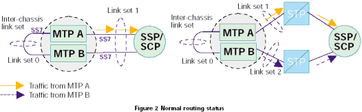 MTP A和MTP B之間的鏈路的設置方法與其他任何SS7鏈路和鏈路集相同。如果有額外的數據設置表明此鏈路與其他連接相鄰節(jié)點的鏈路不同,應區(qū)別對待。