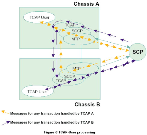 每個TCAP將所有接收的信息傳遞到同機箱中的TCAP用戶任務中,根據每一個TCAP中不同的應用層或用戶,將TCAP層的應用程序發(fā)送的傳送會話和組件原語傳遞給正確的TCAP。在一個雙系統(tǒng)環(huán)境中,接收的消息可以在任何MTP和SCCP層上共享。因此,一個TCAP層接收由其他TCAP處理的應用在激活事務上的TCAP消息是可能的。