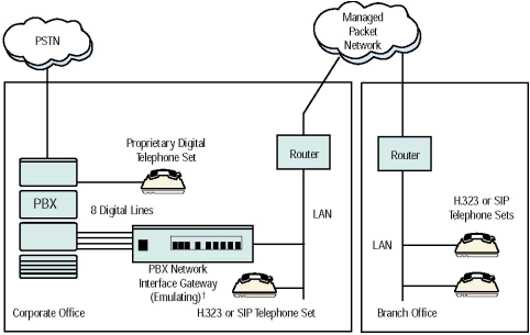 - 場景 2 - 把遠(yuǎn)端辦公室通過一個(gè)包交換網(wǎng)絡(luò)連接到總公司PBX系統(tǒng)上. 基本來說, 網(wǎng)關(guān)把數(shù)字電話功能擴(kuò)展到遠(yuǎn)程辦公室.